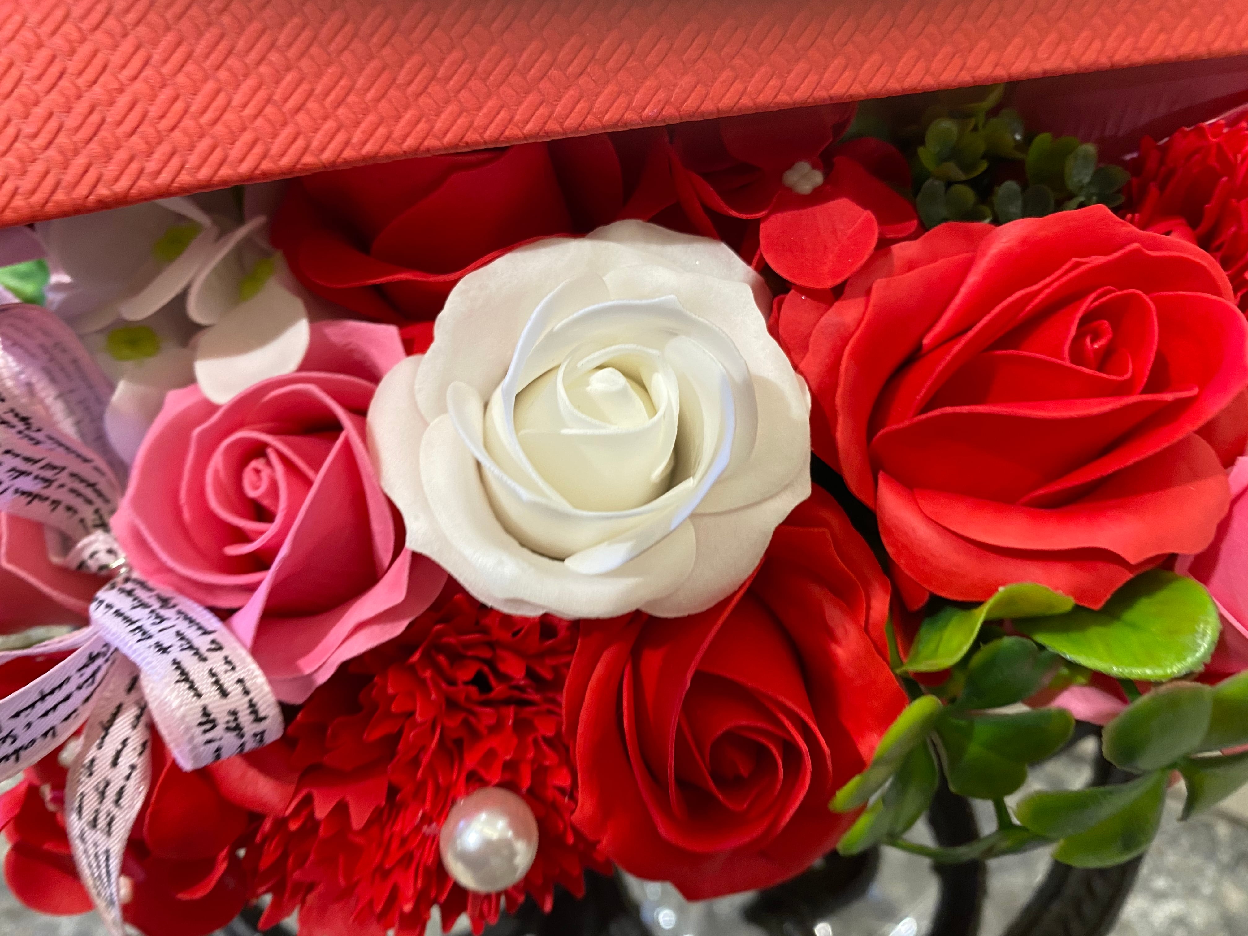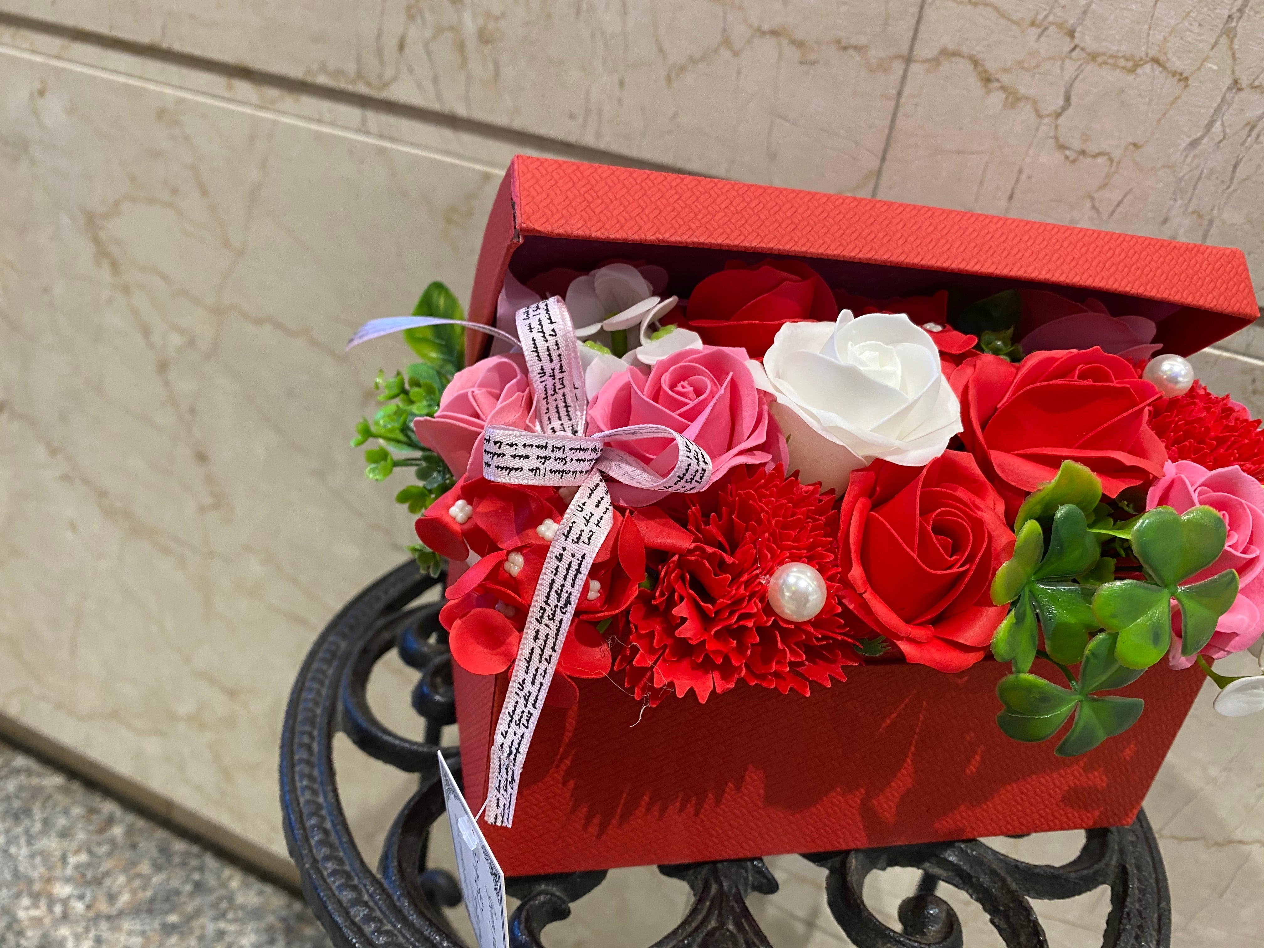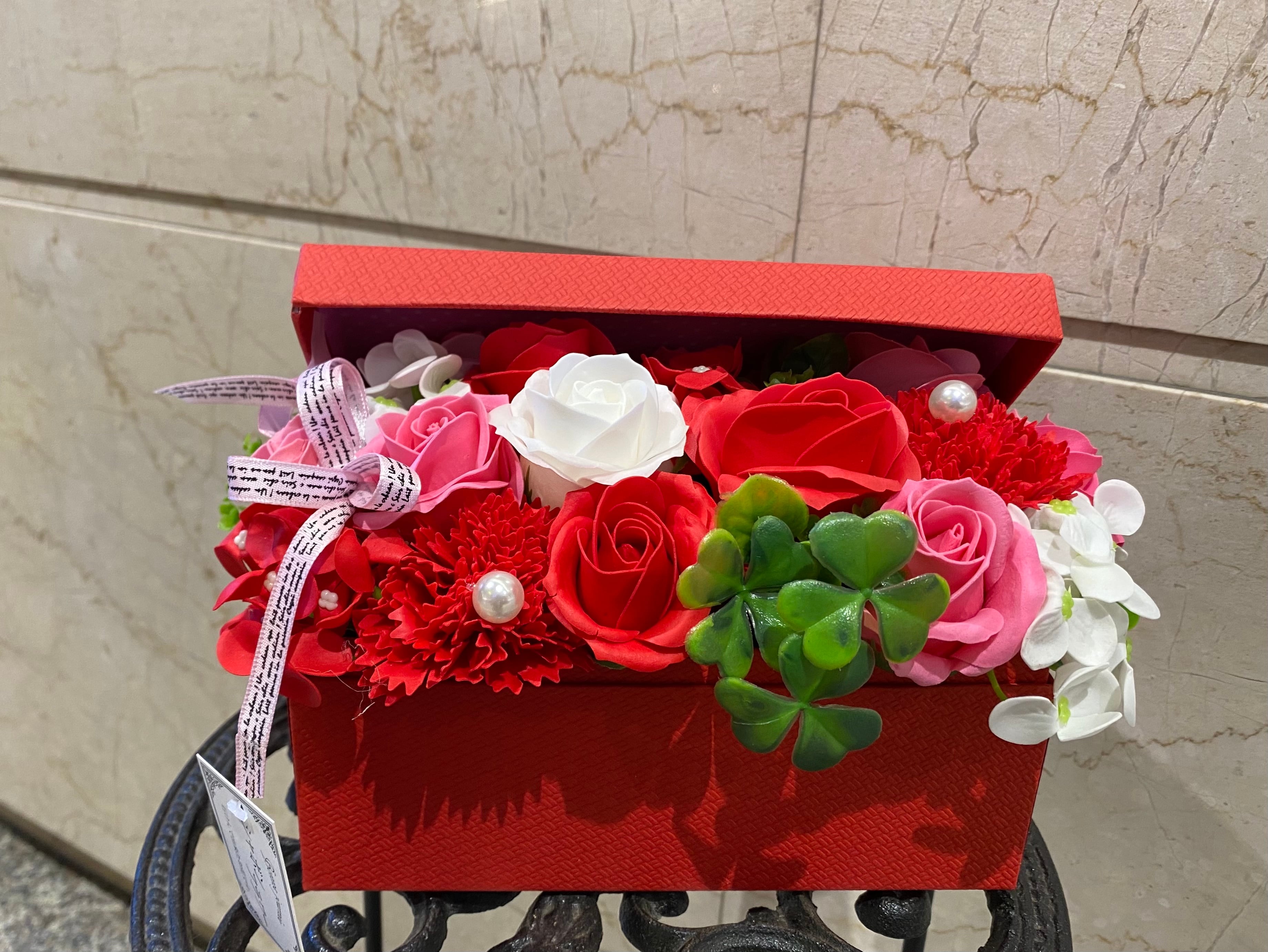 BOXからあるれるようにお花がつまっていますよ♡