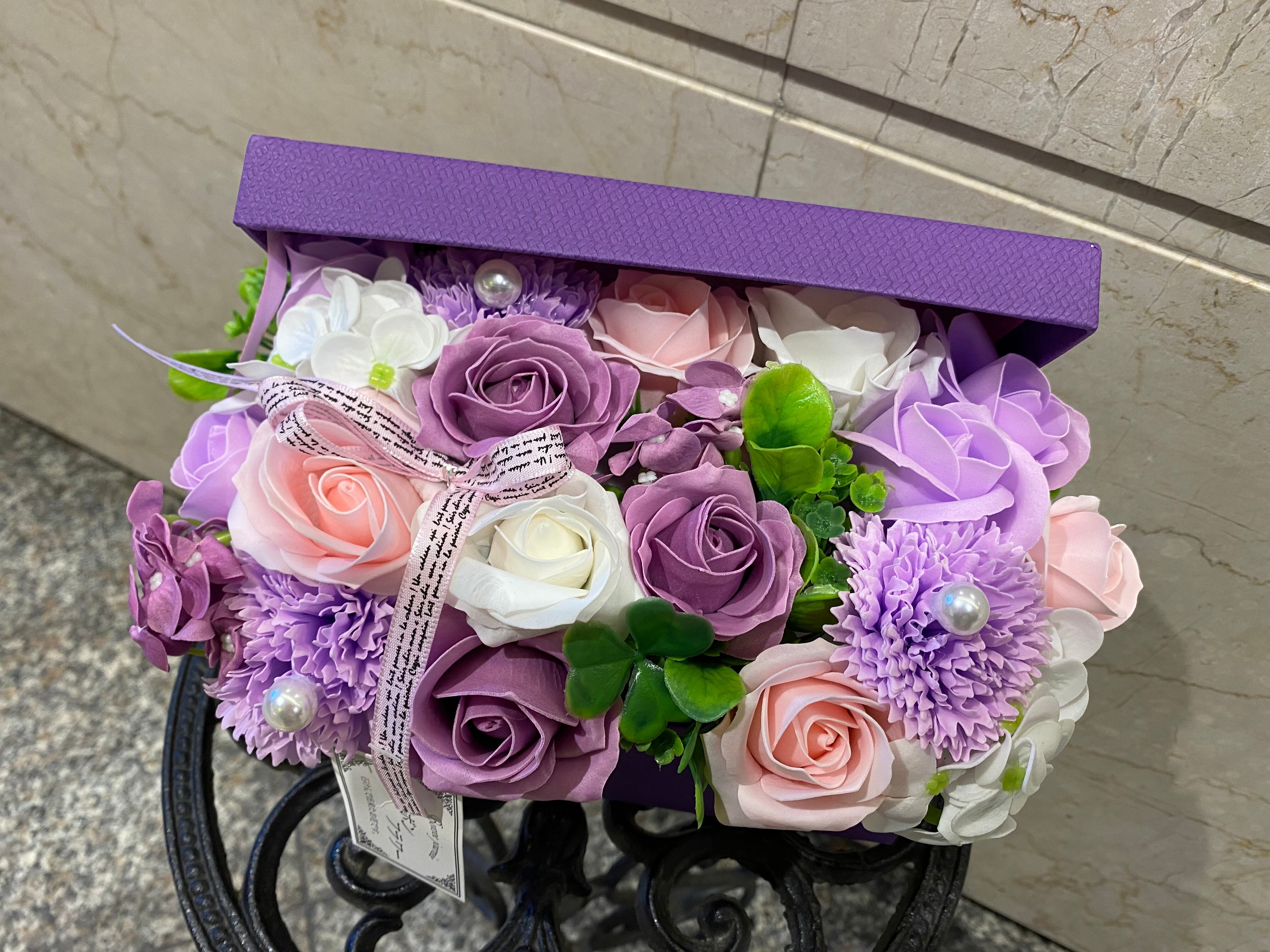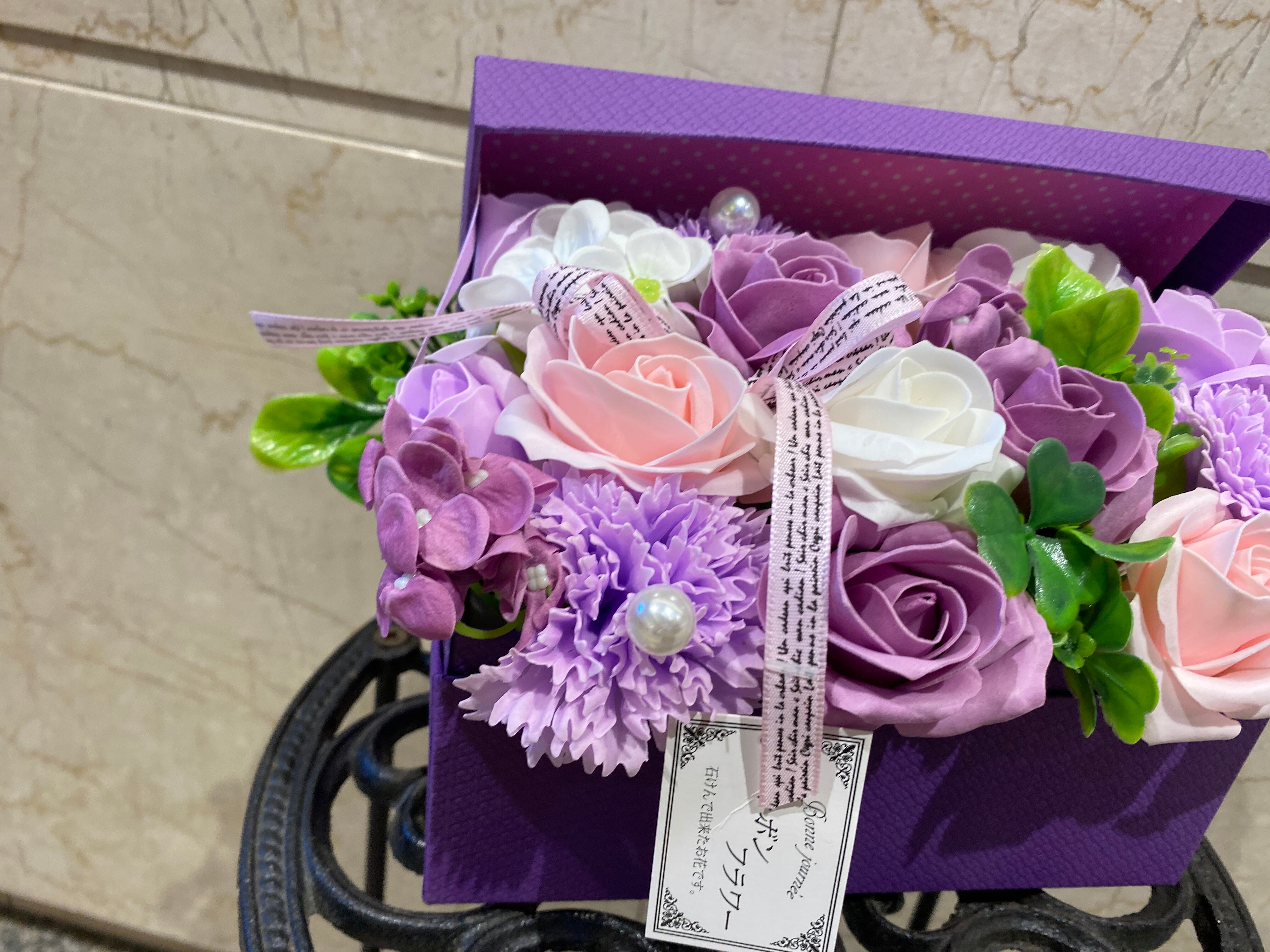(母の日)シャボンフラワーboxアレンジ【パープル】